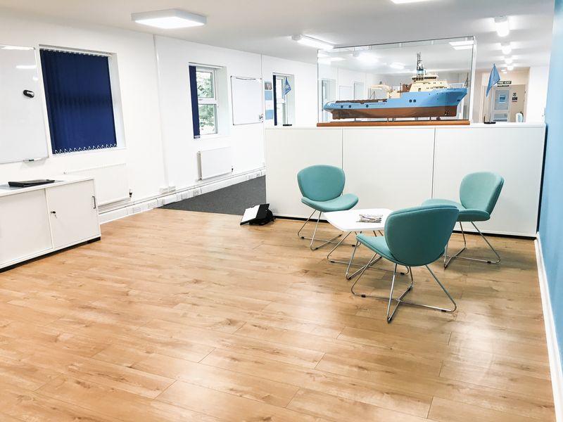 The self-contained office suite extends 3,066 sq ft and comprises reception area, large open plan office with directors' office, two meeting rooms, break out area, kitchen and separate ladies/gents WC's.
